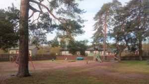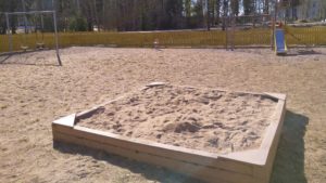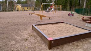 Köpbackan entisen pikkukoulun takapihalla mäntyjen taakse piiloutuu pieni leikkipuisto, jota hädin tuskin huomaa tieltä. Puistossa on liukumäki, keinuja ja hiekkalaatikko, jossa voi leikkiä kyläyhdistyksen hiekkamuoteilla.