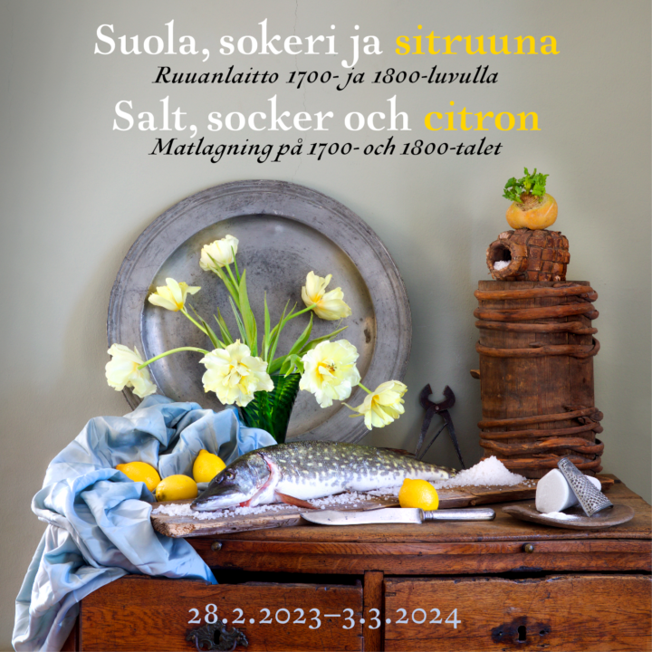 Loviisan kaupungin museon suursatsaus vuonna 2023 on näyttely, joka kertoo ruuanlaitosta 1700–1800-luvuilla. Mitkä raaka-aineet olivat käytössä, mitä ruokalajeja pantiin pöytään ja miltä ruoka maistui? Osattiinko tehdä jäätelöä ilman pakastinta? Mitä mausteita käytettiin? Näihin ja moniin muihin kysymyksiin löytyy vastaus näyttelystä Suola,sokeri ja sitruuna, joka tarjoaa jännittäviä välähdyksiä entisajan arjesta ja juhlasta. Bon appétit!