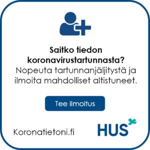 Mikäli olet saanut positiivisen testituloksen joko kotitestistä tai virallisesta laboratoriovarmistetusta koronavirustestistä ja sinulla on listassa mainittuja riskitekijöitä, soita Loviisan terveyskeskuksen puhelinpalveluun numeroon puh. 019 505 1300 (1.1.2023 alkaen 019 5600 300) ma–pe kello 8–15.